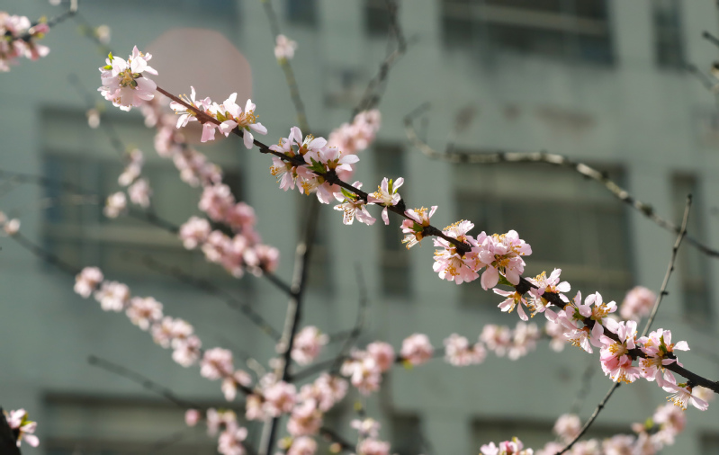 大道两旁绿树成荫,小径两边繁花飞舞。校园内,清雅的玉兰伴着娇艳的桃花,更有早樱的花瓣零星散落,空气中弥漫着阵阵芬芳,共同诉说着对春天的希望。
