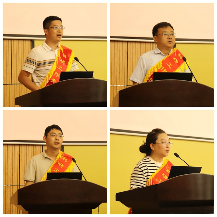 土木学院院长张宁、数理学院党委书记胡燕青、材料与化学工程学院教师李浩、艺术学院教师徐慧极分别代表科研工作先进单位、先进个人上台交流发言,分享了科研工作的体会、经验与收获。