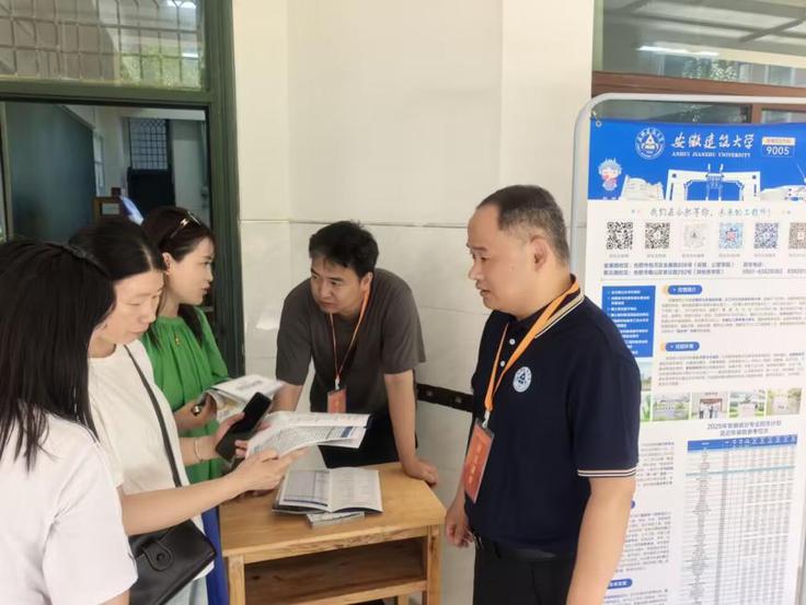 善事:多场域展开招宣活动。一方面,分布式开展大范围线下宣传。6月25日至28日期间,学院领导带领20余位教师赶赴阜阳市、滁州市、天长市等地的省内示范高中和优质生源中学,开展“专场招生宣讲”“优质生源地座谈”“现场咨询答疑”等线下招生宣传活动。通过专场招生宣讲会,介绍学校发展历程、学科优势、专业设置以及就业前景等内容,播放招宣视频,大幅提升了学生及家长对安建大的认知度、认可度、认同度。通过优质生源地座谈会,与阜阳二中、炳辉中学等校领导、高三班主任代表重点阐释安建大办学优势、招生政策与专业特色,并深入交流谋划未来合作,强化了相关中学与安建大的联系密度。通过设立招生咨询点,面对面深度交流学校及学院专业设置、特色优势、前沿培养体系以及广阔的就业与发展前景,受到学校领导老师、同学们和家长们的热烈欢迎。
