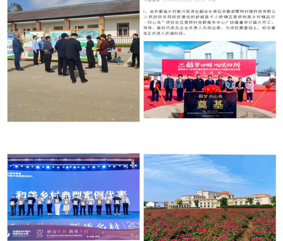 袁隆平舒城杂交稻攻关科技馆和水圩岛民宿文旅综合体项目,是五里桥村被列入精品示范村后重点谋划的文旅品牌。金鑫同志刚驻村时,项目遇到缺乏合适运营主体、设计方案尚未确定和部分村民不愿置换房屋等实际困难。他依托学校学科人才优势,多次邀请专家学者来村把脉问诊,对项目规划、施工提出合理化意见建议;在安徽省乡村振兴研究院帮助下,成功引进具有丰富民宿运营经验的运营主体,该企业为项目注资2040万元,并进一步完善了项目的规划。2025年2月27日项目开工以来,项目进展顺利。针对部分村民不愿置换房屋,他与村“两委”反复上门谈心谈话,深入细致地做住户思想工作、到外地与其子女沟通交流,耐心解释和美乡村建设及发展前景,春节期间登门拜访,以温情感化居民的种种顾虑与不满情绪,妥善解决村民置换搬迁难题。2025年5月,五里桥村和美乡村精品示范村建设入选“第三届安徽省乡村振兴创新创业大赛和美乡村典型案例”。