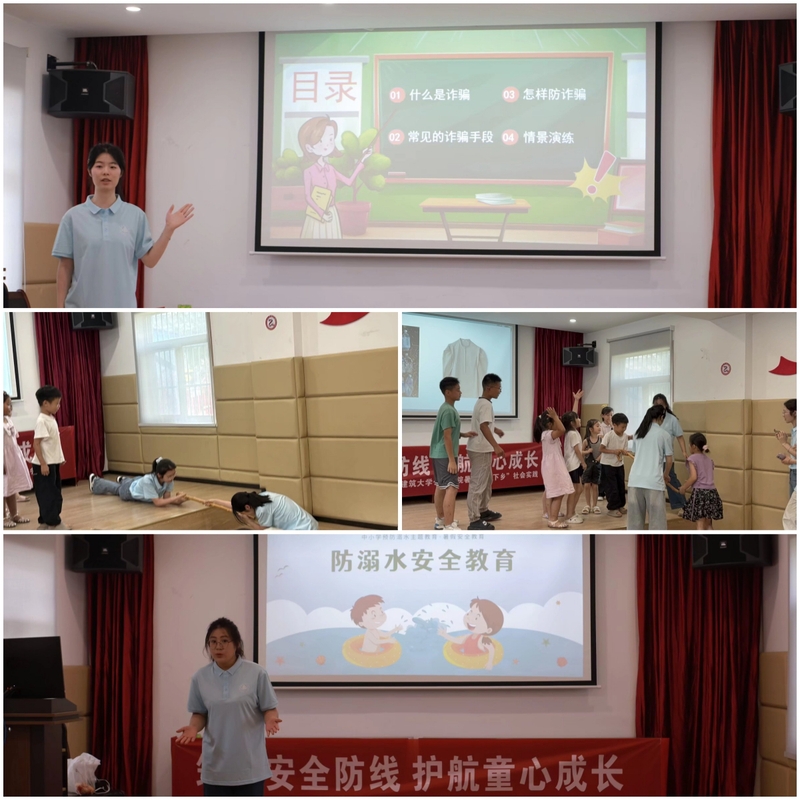 志愿者们列举了网络诈骗、电信诈骗、熟人诈骗等常见类型,并通过实际案例深入分析了诈骗分子的作案手法和特点。同时,传授给大家实用的应对措施,如不轻易相信陌生人的信息、不随意点击不明链接、遇到可疑情况及时报警等。此外,还进行了防溺水知识的讲授,强调了溺水的危险性和预防措施。通过模拟溺水场景及自制救生用品,让青少年们亲身体验溺水的危险,掌握正确的自救和互救方法。这些知识的传授,有效提高了青少年们的安全防范意识和自我保护能力,为他们的生命安全筑牢了防线。
