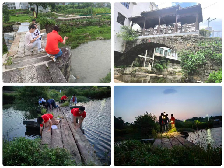 在落马桥的勘查现场,队员们发现这座位于潜山市余井镇黄岭村的清代石拱桥隐患突出:主拱西侧第三块拱石存在1.3米纵向裂隙,桥面因地基沉降倾斜度达4°,桥底藤蔓深入石缝导致风化加速。队员们当即标注“一级保护优先级”,并提出:先除藤蔓固裂隙、再用糯米灰浆补拱券的分级方案。 在太湖县陆冲古石拱桥,队员们通过AI图像识别比对历史照片;宿松县长铺镇东郊祝家桥的石缝中检测出微生物侵蚀痕迹,团队结合当地石材特性,建议采用“草木灰溶液涂刷”的传统防腐法。这些科技手段的应用,不仅提高了勘察效率,更为古桥保护提供了科学依据,展现了土木学子在文化遗产保护中的创新与实践能力。