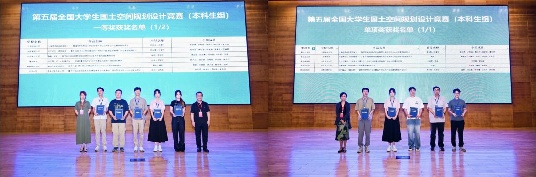 建筑与规划学院规划系本科生李梦荷、产斯铨、葛怡然、胡梦妮、唐安琪的作品《潮绣绿岸,珠润花城——潮间带城市视角下的白鹅潭大湾区艺术中心片区更新规划设计》(指导老师:李伦亮、张馨木)获得规划设计竞赛(本科生组)一等奖、最佳立意奖。陈刘亮、张忆涵、叶紫璇、吴非凌、李超毅的作品《红厂旧忆,绿岛新生——基于包容-多元-共生理念的广州市天河区鹰金钱食品厂旧址更新规划设计》(指导老师:李伦亮、张馨木)获得一等奖。张炯亨、岳严军、曾泽华、张训哲、吴星宇的作品《红棉有重开,葺鳞以聚龙——时空折叠理念下的聚龙湾片区规划设计》(指导老师:周梦茹、汪勇政)获得三等奖。城乡规划专业研究生杨爽艳的作品《淮河流域行蓄洪区乡村承洪韧性评估与治理路径研究-以安徽段上游为例》(指导老师:顾康康)获论文竞赛(研究生组)三等奖。