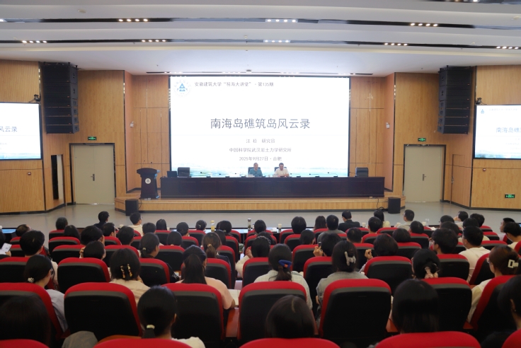 本网讯 9月27日,由校党委宣传部主办,土木工程学院、安徽省智能地下探测重点实验室承办的第135期“易海大讲堂”在南校区徽风楼学术报告厅举行。中国科院武汉岩土力学研究所研究员、博士生导师汪稔教授为全校师生做题为《南海岛礁筑岛风云录》的精彩报告。