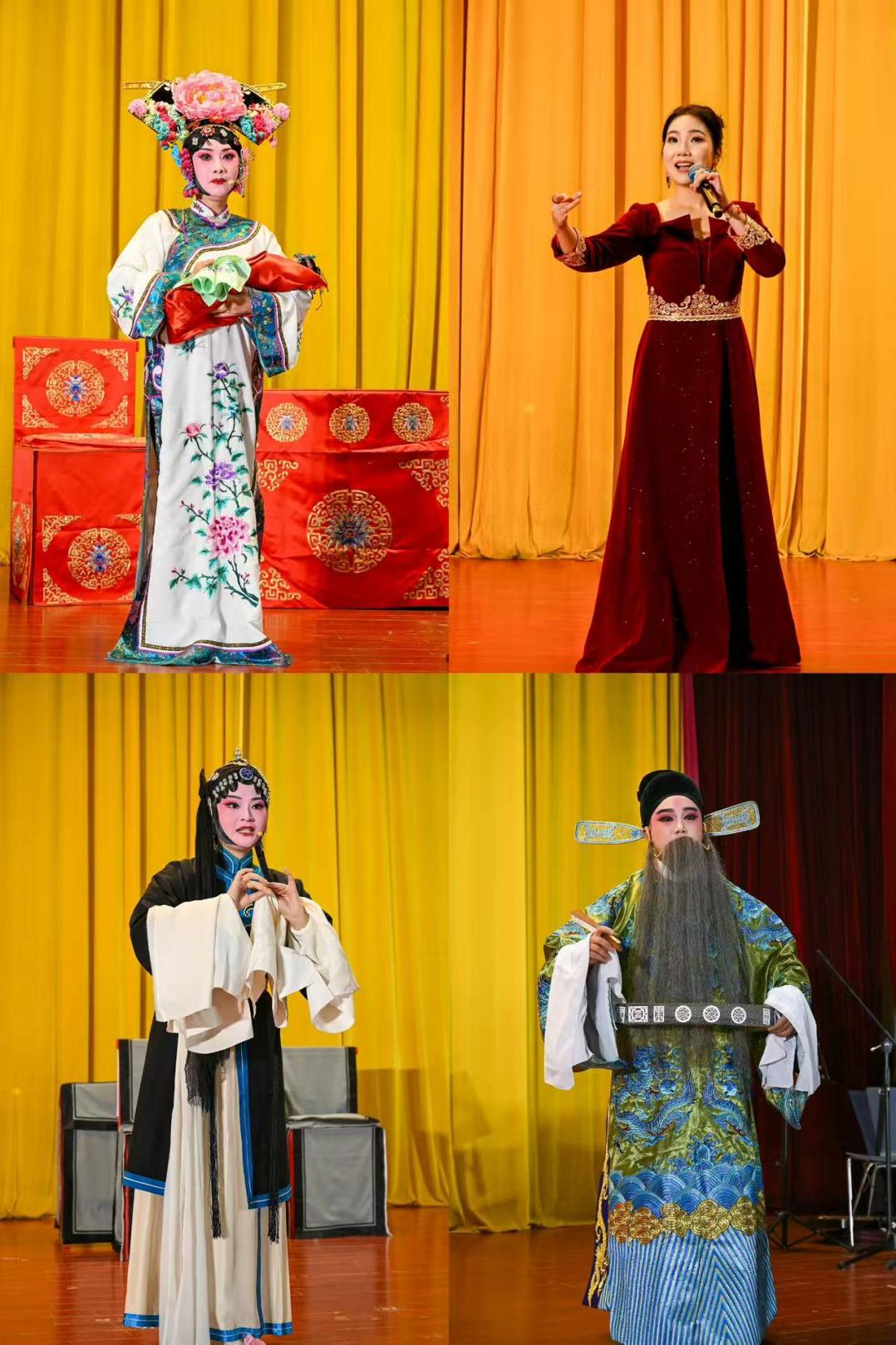 演出开场,随着公管学院学生邹萌演唱的《四郎探母》选段,现场瞬间被高亢嘹亮的唱腔引爆。黄梅戏《女驸马》《夫妻观灯》选段,豫剧《穆桂英挂帅》选段、庐剧《杨排风》选段让现场观众近距离感受到地方戏曲的独特魅力,老生代表剧目《珠帘寨》。演员们鲜活演绎了唐末李克用和大太保之间从倨傲推诿到被迫接旨的心理转变,将人物性格刻画得生动形象。折子戏《桑园会》中,老生、老旦、青衣配合默契,念白唱腔将嬉笑怒骂与家庭温情交织,喜庆欢快的氛围为整场演出画上了圆满句号。两个小时的演出将传统戏曲与曲艺、现代说唱有机融合,让观众大饱眼福、叹为观止,沉浸在戏曲艺术的独特魅力之中。