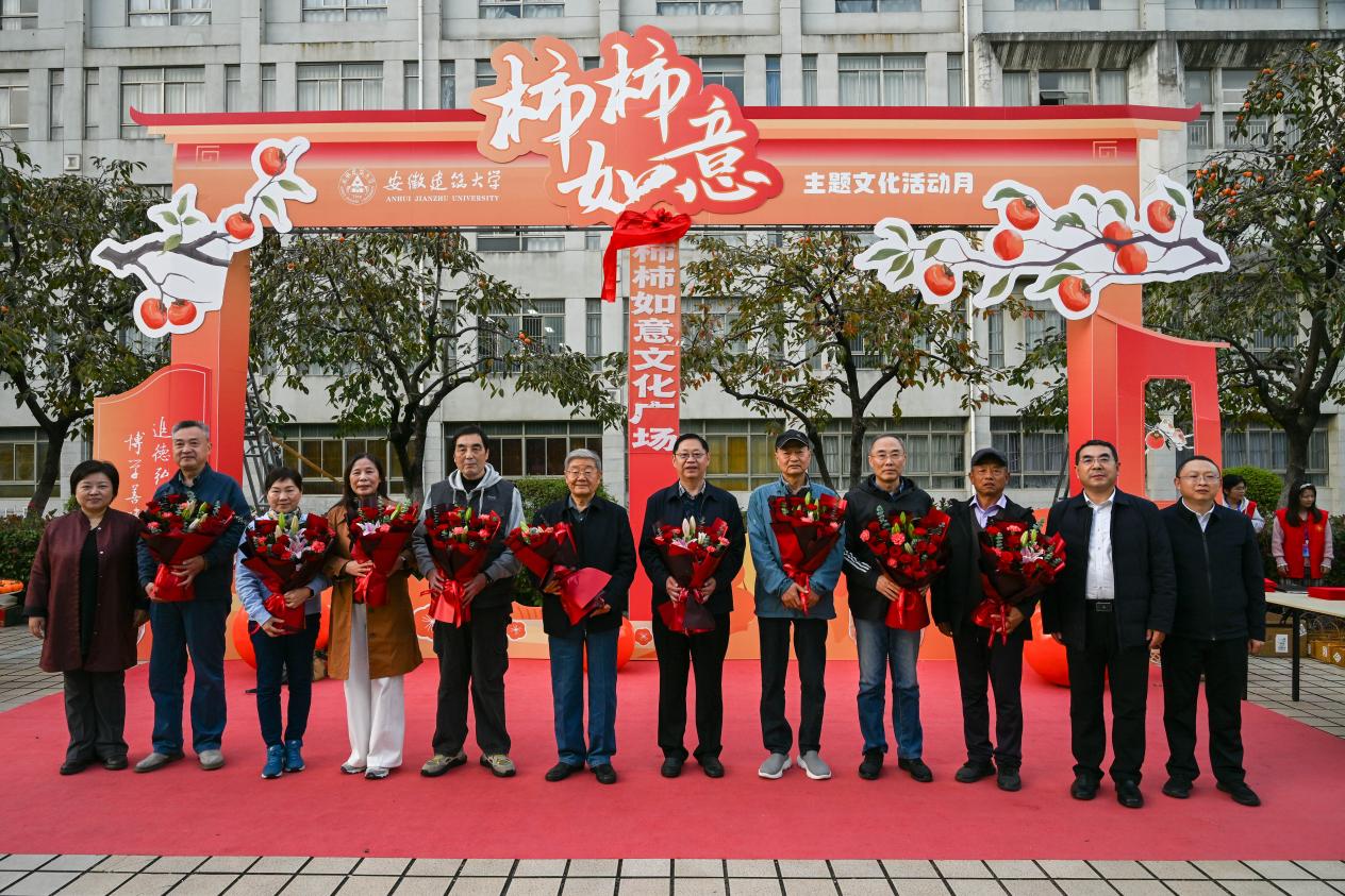 本网讯 “柿柿称心情自畅,霜飞叶落绘深秋。”金秋十月,建大校园里的柿树枝头硕果盈枝。1029下午,学校首届“柿柿如意”文化活动月在紫云路校区顺利闭幕。校党委副书记、校长蔡国军,党委常委、副校长李早,党委常委、副校长高跃峰,离退休老同志代表,合肥荣事达电子电器集团有限公司副总裁罗松,安徽荣品科技住宅发展有限公司董事潘寅,黄山市上丰乡党委书记汪红英,上丰乡党委人大主席杨剑,上丰乡党委委员方芝以及师生代表齐聚柿子文化广场开展重阳敬老及总结表彰活动。