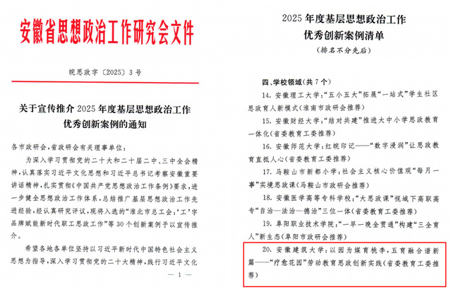 这一创新实践通过构建“短期活动激发兴趣—中期项目培养能力—长期空间滋养心灵”的可持续发展模式,打破了传统思政教育的时空限制,形成了可复制、可推广的育人经验。安徽日报以及安徽教育网、安青网等主流媒体多次宣传推广。该案例的入选,为全省基层思想政治工作提供了有益借鉴。学校将继续深化思想政治工作改革创新,不断提升育人实效,为培养德智体美劳全面发展的时代新人作出新的贡献。(文/图:聂玮、王昊禾,一审:聂玮,二审:刘浩,三审:吴运法、唐黎)