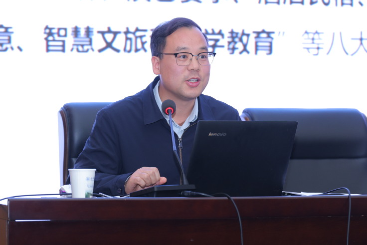 王永璋以《绽放长江文明之光 建设璀璨 “欢乐之城”》为题,从文明起源的遗址文化、开放多元的开埠文化、钢火淬炼的工业文化、贾道儒行的徽商文化、山水相依的生态文化、活力四射的欢乐文化六个维度,系统介绍了芜湖市文旅发展成果,阐述了芜湖市委市政府如何整体谋划,打造文旅城市。同时,他就如何开展校地文旅协同合作提出了构想。