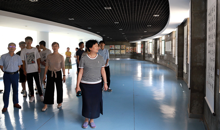 参赛作品在南校区大学生活动中心二楼展出,校党委副书记吕萍观看了展览。(文/图:金鑫/刘毅阳;审稿:胡雯)