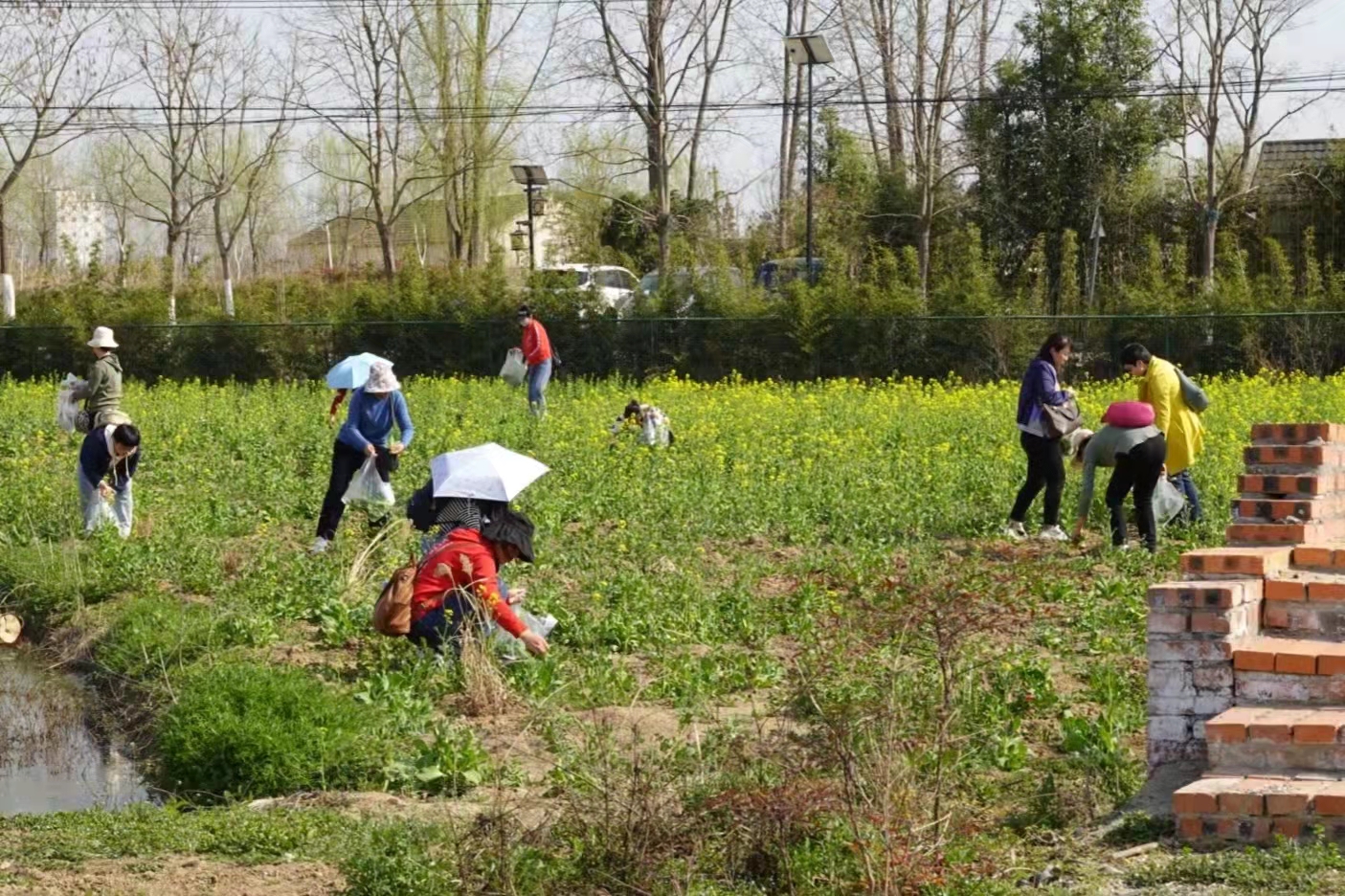在采摘活动中,大家兴冲冲地走进油菜花地,采摘绿油油的菜苔,一边采摘蔬菜,一边互相交流,充分感受着清新的田园气息,体验了采摘的乐趣,陶醉于春意萌动的田野中。