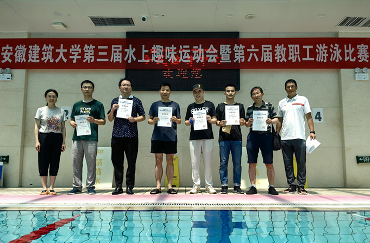 赛前周密准备,赛场劈波斩浪。经过近3个小时激烈比拼,土木学院李婉琳,艺术学院汪哂秋,马克思主义学院夏淑娟、周晨,机关二党委王敏莉及建规学院邓宇宁分获50米女子组前六名,建规学院许开虎,电信学院周原,建规学院蔡进彬、邓元、经管学院黄家墩及电信学院张建中分获50米男子甲组前六名,环能学院方武,艺术学院田强,土木学院的张霖、周其明,后勤集团唐黎及经管学院尹正分获50米男子乙组前六名,数理学院侯雅巍、孙钊、徐金荣,材化学院张劲辉、电信学院徐恒、机电学院方继根分获50米男子丙组前六名,土木学院、建规学院、电信学院、艺术学院、环能学院、马克思主义学院获得团体总分前六名。