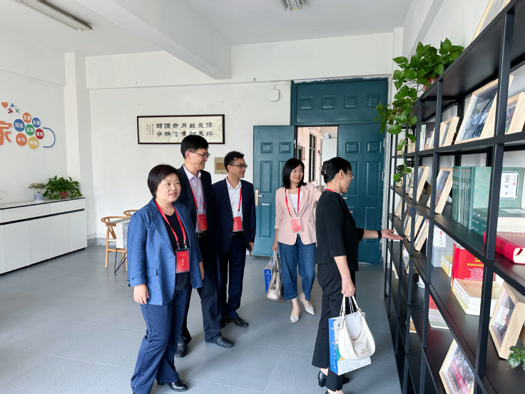 李早一行参观了职工风采墙、图书阅览区、会客休闲区等。并欣赏了由学院教职工提供的书画作品。