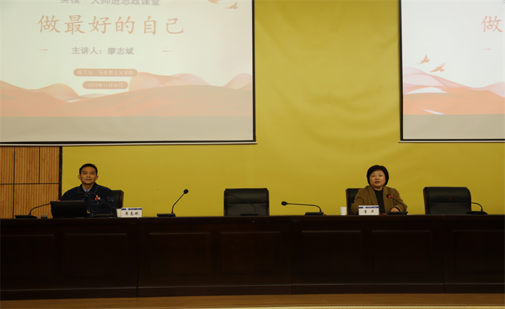 本网讯 为深入学习贯彻习近平新时代中国特色社会主义思想和党的二十大精神,大力宣传弘扬道德模范先进事迹和伟大精神,进一步深入推进“大思政课”建设,深化思政课改革创新。近日,由校工会和马克思主义学院联合举办的“英模•大师进思政课堂”主题报告会在徽风楼二楼报告厅举行。