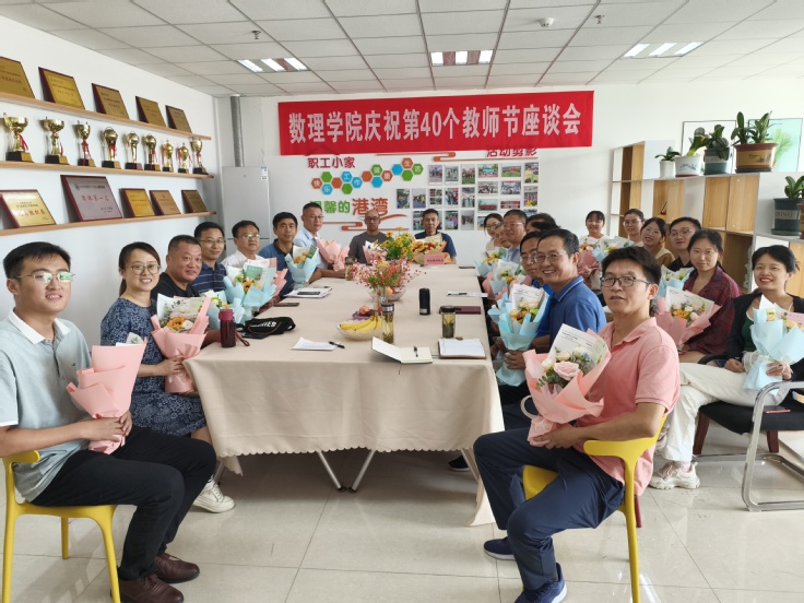 9月10日下午,数理学院于职工小家隆重举行了教师节座谈会,学院领导、教师代表们齐聚一堂,围绕“大力弘扬教育家精神,加快建设教育强国”的主题展开热烈的讨论,并对学院、学校的高质量发展建言献策。学院党委书记胡燕青主持会议。