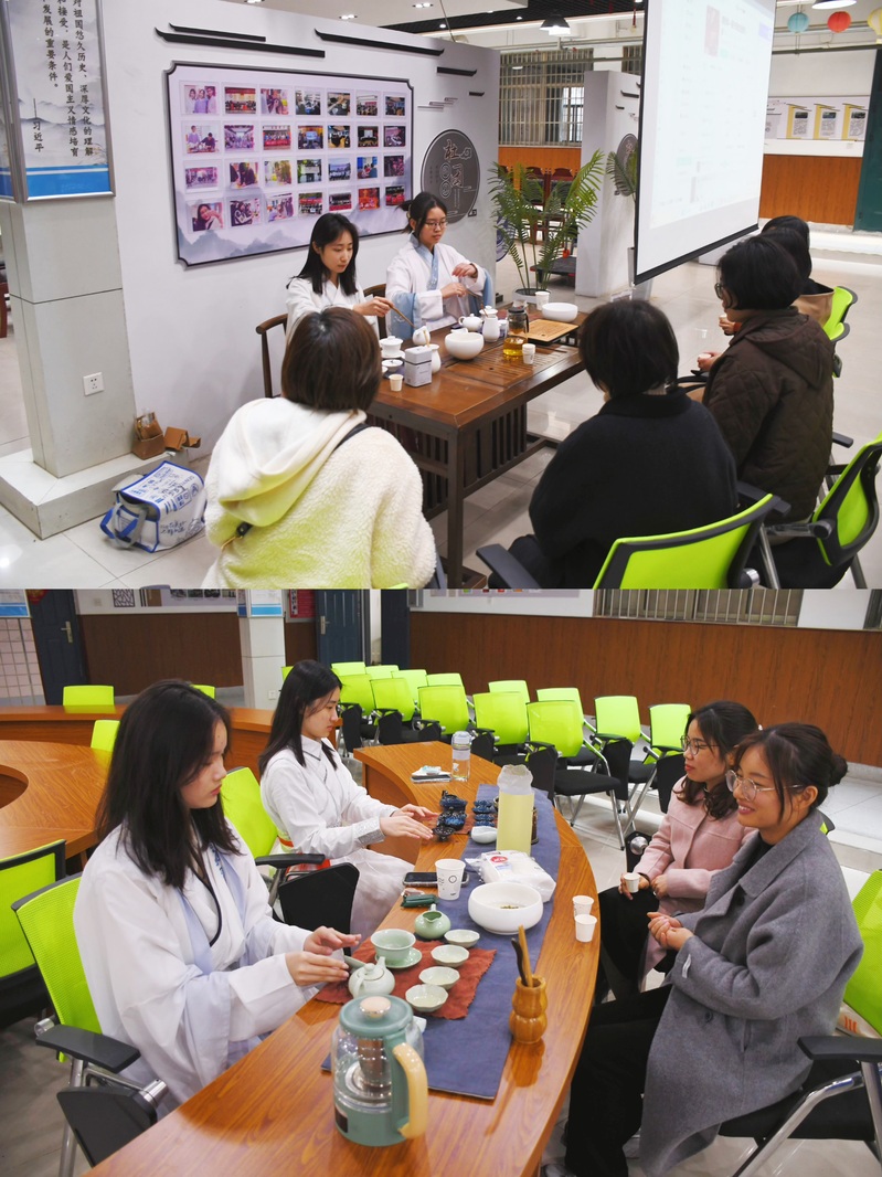 移步至茶香萦绕的茶艺展演厅,现场飘散着淡淡茶香。身着汉服的茶艺师手持白瓷盖碗,演绎“凤凰三点头”等传统冲泡技艺,水流在空中划出优美弧线,茶汤在杯中舒展沉浮。现场冲泡的茉莉香茗更成为抢手茶饮。“没想到喝茶也能养肝明目,这个时节喝正合适!”老师们品尝后连连称赞。