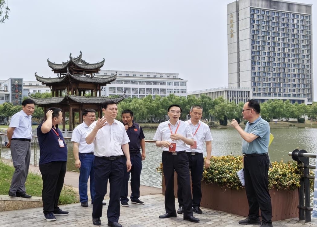 本网讯  为抓实落细本科教育教学审核评估专家组入校考察工作,6月15日上午,党委书记孙道胜,党委副书记、校长黄显怀,党委常委、副校长闵杰对集中考察环节进行实地视察、走访,相关部门负责人陪同。