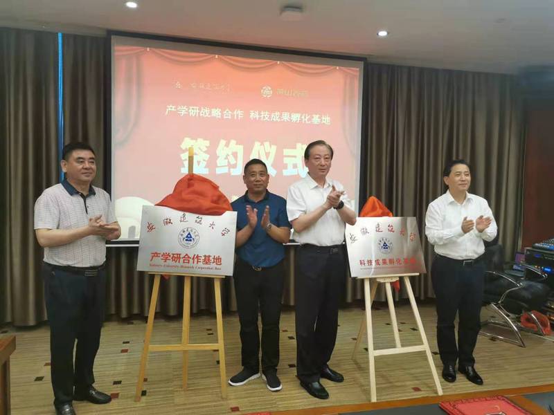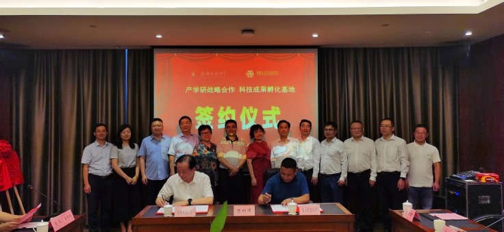 本网讯 6月25日,校党委常委、副校长蔡新立率队赴黄山区推进科技成果转化,与黄山鑫赢再生资源有限公司签订校企战略合作协议,并为校企产学研合作基地、科技成果孵化基地揭牌。科技成果转化中心、科技处、经管学院、艺术学院相关人员参加签约和揭牌仪式。黄山市经济和信息化局、黄山区政府、黄山太平经济开发区、黄山区科技经信局和黄山区住房和城乡建设局等部门参加活动。