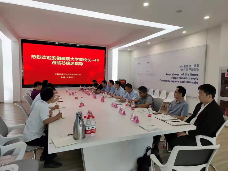 本网讯 9月3日,校党委副书记、校长黄显怀赴安徽芯瑞达科技股份有限公司开展校企合作推进科技成果转化,党委常委、副校长闵杰出席,科技处、科技成果转化中心、建规学院、电信学院、数理学院、艺术学院、机电学院、节能院相关人员随同。