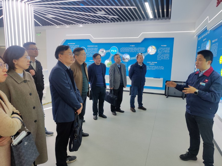 向学毅在展厅介绍了皖维聚乙烯醇、可再分散性乳胶粉、VAE乳液、高强高模纤维、PVA光学薄膜、偏光片、PVB树脂粉和PVB胶片等产品,这些产品在质量上达到了国际领先水平。
