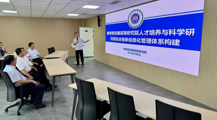 蔡国军指出,承接教育部高等研究院综合管理信息系统建设任务,是上级对学校办学实力与服务能力的信任,更是一份重要责任。蔡国军强调,要确保数据真实、安全、可追溯;要做好科研管理决策的“智库”,通过精准数据分析为高等研究院高效运转提供支撑,切实落实省厅委托,主动对接全国高等研究院需求,为高等教育科研数字化发展贡献力量。