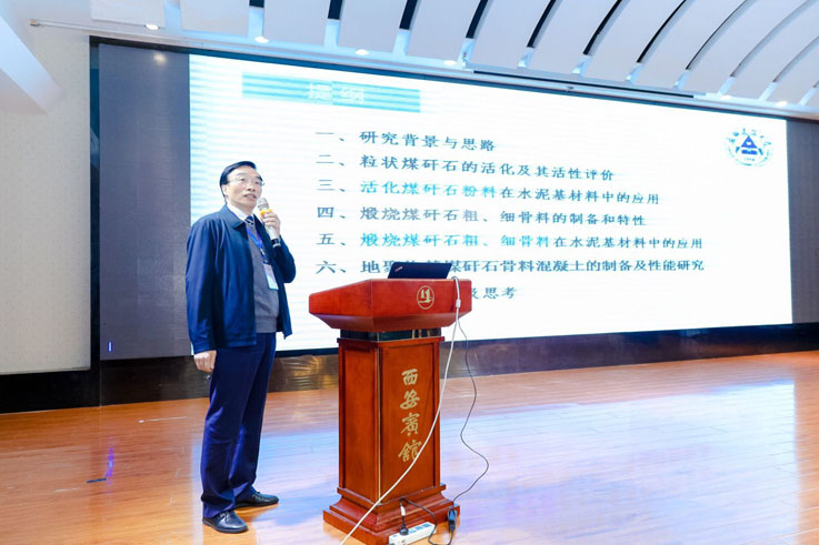 孙道胜教授介绍了以“煤矸石在水泥基材料中全组分高效利用技术”为主题的报告,报告主要内容包括粒状煤矸石的活化及其活性评价,活性煤矸石粉料在水泥基材料中的应用,煅烧煤矸石粗、细骨料的制备和特性,煅烧煤矸石粗、细骨料在水泥基材料中的应用,地聚物基煤矸石骨料混凝土的制备及性能研究,最后提出了由活性粉体到粗细骨料的全组分高效利用技术。