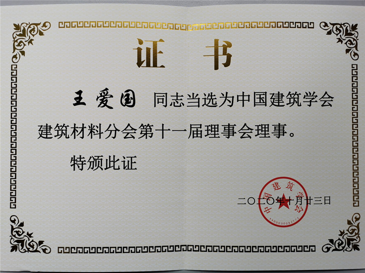 本网讯   10月23日,中国建筑学会建筑材料分会理事会换届会议在成都市举行。中国建筑学会常务副秘书长周文连、中国建筑学会建材分会第十一届理事会100多名理事候选人出席了会议。换届程序由第十届理事会周永祥秘书长主持。赵霄龙理事长代表第十届理事会做工作报告。中国建筑学会周文连常务副秘书长宣读了中国建筑学会《关于同意中国建筑学会建筑材料分会第十一届理事会换届的批复》。选举产生中国建筑学会建筑材料分会第十一届理事会,我校王爱国教授当选为理事会理事。