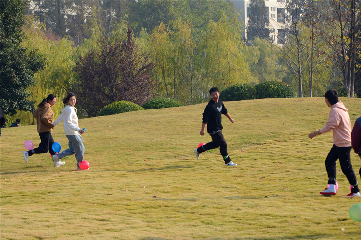 本次团辅活动分为四个环节,“飞花令”、“你画我猜”、“踩气球”和“人三足”。其中,观感上精彩的是“踩气球”游戏。一轮十个人,一男一女组成一组,当游戏开始后,每组相互搭配,左右脚捆绑个气球,一边保护自已气球的同时,一边进攻踩爆其他组的气球。在其他活动中,大家也都沉浸在快乐的氛围中。游戏过程紧张而激烈,各组同学齐心协力,力争上游,现场充满了欢声笑语。