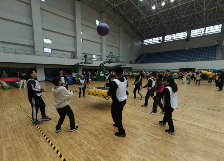 赛前,运动员们早早就来到比赛场地热身,仔细琢磨比赛规则。赛场上,运动员们全身贯注、精神饱满、努力拼搏、齐心协力、全力以赴。材化学院教职工紧张激烈的比赛中发挥出极强的团队精神,最终夺得本次运动会团体二等奖。