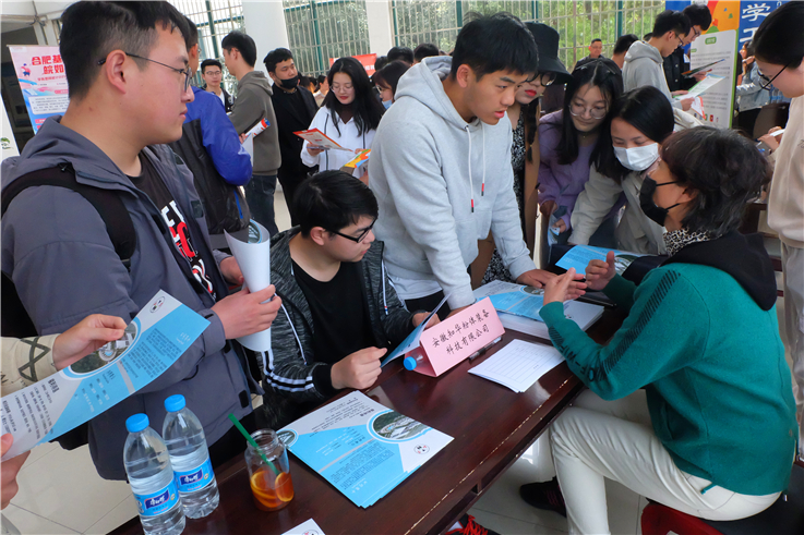 本网讯 为切实做好学院毕业生就业工作,415,材化学院在机电楼一楼举办专场招聘会,中建西部建设有限公司、江苏双龙集团有限公司、安徽凯奇建材有限公司、斑马AI课、学而思网校等多家企业前来招贤纳士。2021届各专业毕业生纷纷到场应聘,每家企业前都挤满了面试咨询的学生,现场气氛热烈。