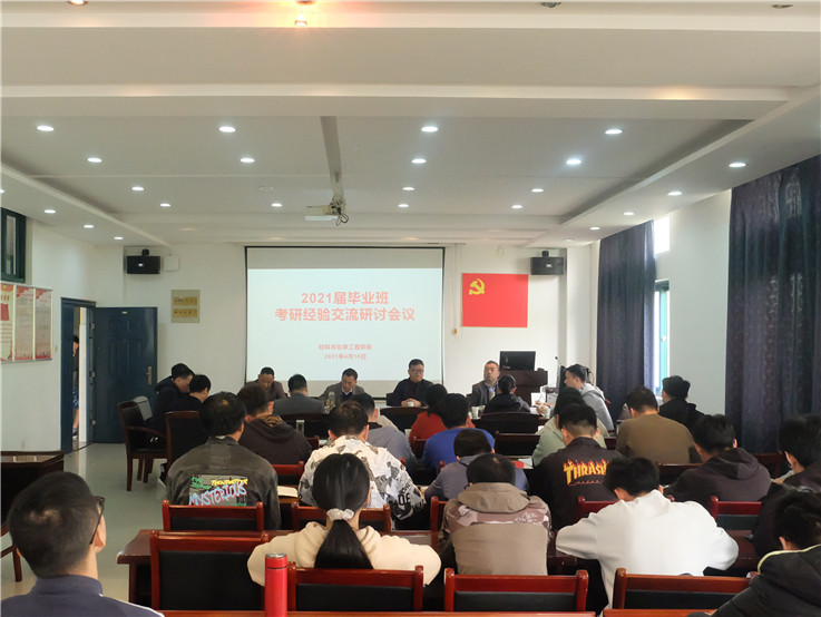本网讯 为了进一步营造浓厚的考研氛围,更好地推进学院考研工作,切实做好对2018级考研学生的针对性指导和服务保障,4月16日,材化学院在机电楼会议室举办了2021届毕业班考研经验交流研讨会,特邀土木学院党委副书记胡燕青、环能学院辅导员吴明轩、机电学院辅导员李晶岑前来传经送宝。学院党政领导、各专业系主任、全体辅导员、2021届毕业班班长、2018级各班级班长和学习委员参加会议,会议由学院党委副书记何世明主持。