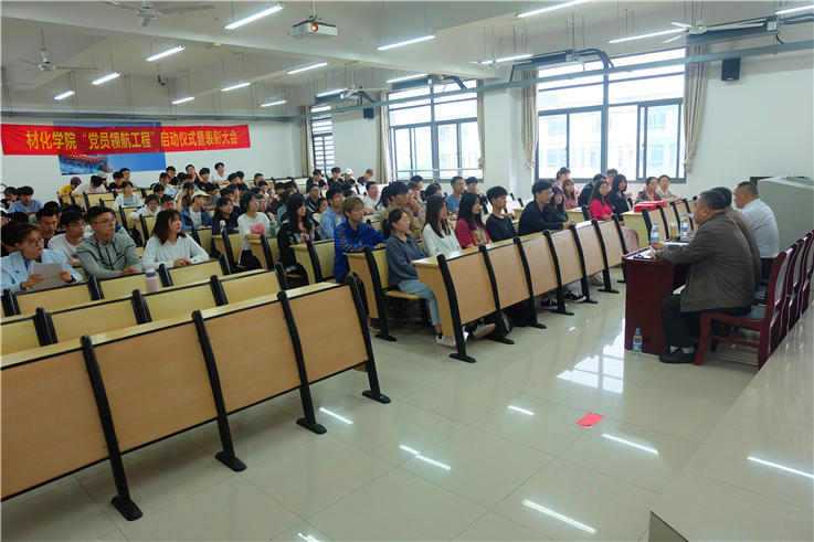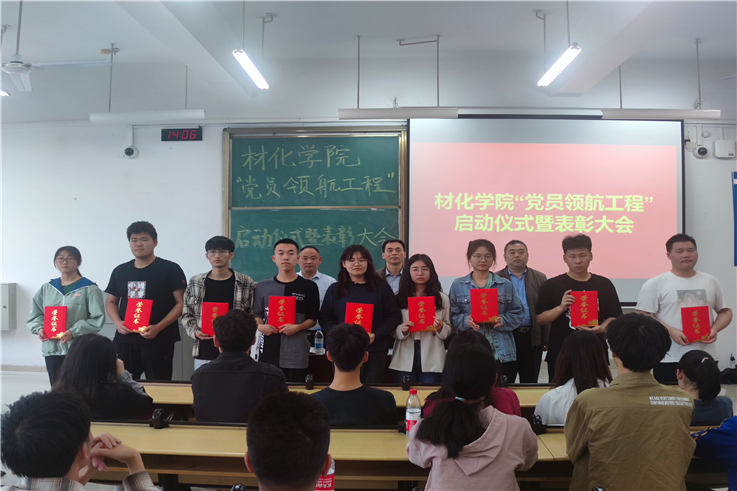 本网讯 为进一步学习贯彻习近平总书记在党史学习教育动员大会上的重要讲话精神,积极响应学校“我为师生办实事”实践活动要求,充分发挥师生党员的模范带头作用,师生党员定向帮扶学业困难学生,对其学业生涯进行助力领航,5月19日,材化学院隆重举行了“党员领航工程”启动仪式暨学生工作先进集体和优秀个人表彰大会,学院党政领导班子及师生代表参加了启动仪式。