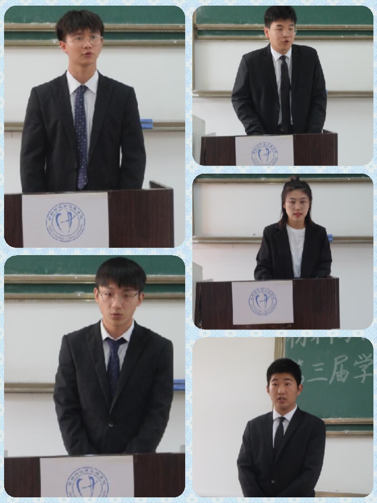 会议开始现任学生会执行主席朱华卿主持介绍了本次会议的主要议程,代表第二届学生代表大会作了工作报告,宣读了学生会主席竞聘规则随后竞选者依次上台,就自己的竞选目标、竞选原因、个人优势以及当选后的展望等方面分别进行了陈述。尽管只有短短的5分钟,但竞选者们都较为完美向评委们展现了自己。在每位候选者演讲后,评委老师都会向他们提出一些问题以考验他们的应变能力。最后经过各位参会人员投票表决赵家伟王杰曹亮入选新一届学生会主席团成员。会议最后何世明进行了总结讲话,未来学生会的发展提出了“定位示范创新协作”八字要求期望所有学生会成员大胆创新,敢于改变,努力提升材化学院学生会的影响力。