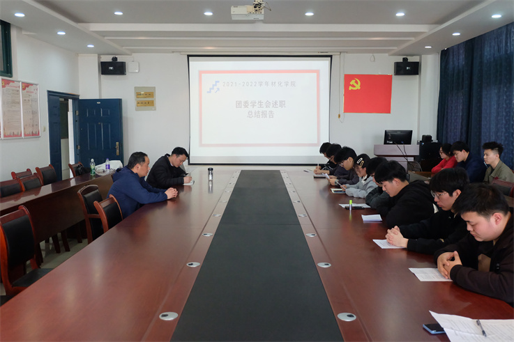 本网讯 为加强对学生干部的监督和管理,及时掌握学生会各部门的工作情况,3月21日,材化学院于学院会议室召开了2021-2022学年第一学期学生干部述职评议会。参加本次会议的有材化学院党委副书记何世明,辅导员老师,学生会主席团成员及各部门部长。