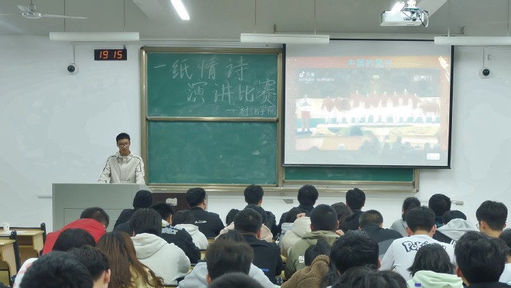 本网讯 为了丰富学生课余生活,引导学生抒发内心情感,促进学生心理健康,近日,材化学院于逸夫楼5416教室举办一纸情诗演讲比赛,各年级材化学子积极参与此次活动。