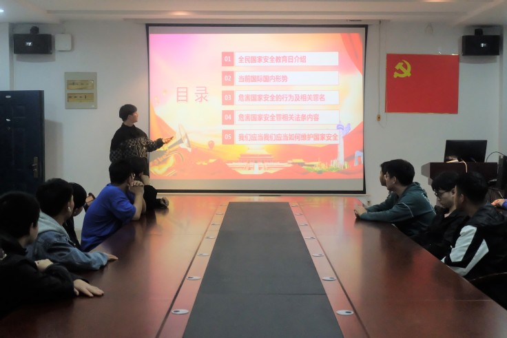 4月13日晚,国家安全宣讲团成员赵家玮向大家介绍了关于国家安全教育日的相关知识,通过分析国内外经济形式、讲解危害国家安全的行为、解读危害国家安全的法律法规,激发了材化学子对国家安全问题的关注,多维度普及了国家安全常识,让国家安全教育入耳、入脑、入心。