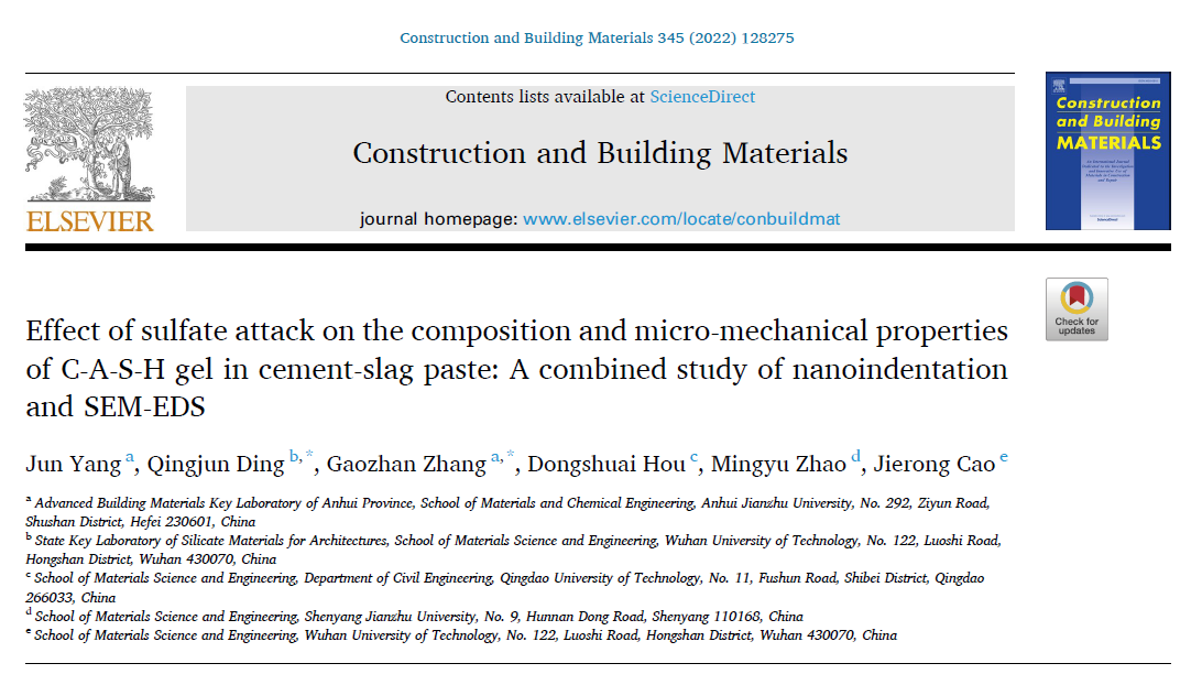 本网讯  近期,我校先进土木工程材料科研团队杨军博士联合武汉理工大学,在混凝土材料水化产物组成和C-A-S-H凝胶微结构研究领域取得新成果,在国际知名建筑材料期刊《Construction and Building Materials》(中科院1区,影响因子7.693)上发表了题为“Effect of Sulfate Attack on The Composition and Micro-mechanical Properties of C-A-S-H Gel in Cement-slag Paste: A Combined Study of Nanoindentation and SEM-EDS”的研究论文(https://doi.org/10.1016/j.conbuildmat.2022.128275), 杨军博士为第一作者,武汉理工大学产学研首席教授/欧美黑人巨大videos精品_欧美黑人巨大xxxxx_欧美黑人乱大交_欧美黑人乱大交_欧美黑人牲交videossexeso_欧美黑人添添高潮a片www_欧美黑人添添高潮a片www_欧美黑人性暴力猛交喷水黑人巨大讲席教授丁庆军和我校张高展教授为共同通讯作者。