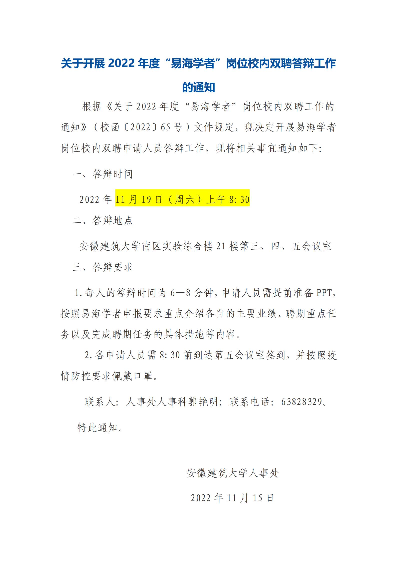 关于开展2022年度“易海学者”岗位校内双聘答辩工作的通知