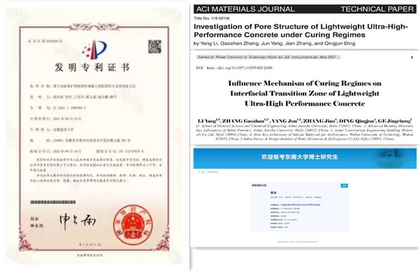 李洋同学硕士期间先后在Construction and Building Materials、ACI Materials JournalJournal of Wuhan University of Technology等刊物上发表6篇高水平学术论文,并获得1项国家发明专利授权目前该生已东南大学材料科学与工程学院录取为博士研究生