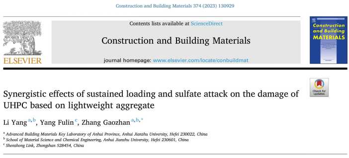 本网讯近日,我校材料与化学工程学院土木水利专业研究生李洋在土木工程材料行业顶级期刊Construction and Building Materials(IF=7.693,中科院1区(材料TOP期刊)上发表了题为“Synergistic effects of sustained loading and sulfate attack on the damage of UHPC based on lightweight aggregate”(doi.org/10.1016/j.conbuildmat.2023.130929)的研究论文,标志着材化学院研究生培养质量的进一步提升。