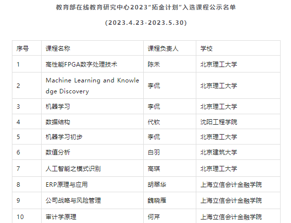 “拓金计划”旨在推广国家级、省级金课建设及应用的优秀经验,拓展各类金课的示范引领效应,助力培育更多优质课程,促进优质教学模式的相互借鉴和智慧教学经验交流的广泛开展。对于入选的课程和教师,研究中心将调配专门资源以示范课形式直播展示,供全国高校教师观摩学习。
