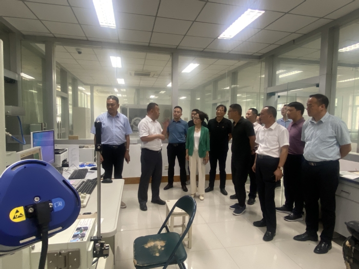 丁益陪同来访人员参观现代分析测试中心时对学院的科研分析测试设备现况进行了详细介绍,并就来访人员关心问题一一做了解答。