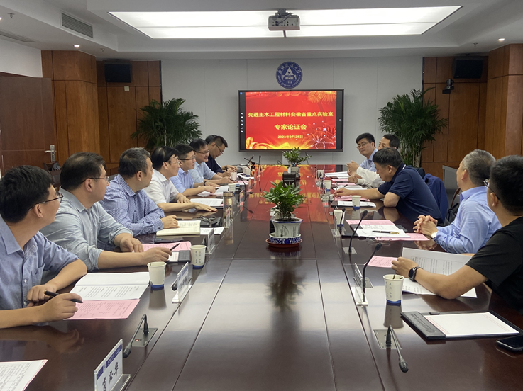 专家组组长余其俊主持实验室建设计划论证环节。孙道胜围绕混凝土强韧不协同、土木工程材料全生命周期不低碳、大宗固废利用不高效等重大科技问题,针对实验室建设的意义、建设目标和预期成果、研究方向与研究内容、建设基础与保障条件等方面向各位专家进行了汇报。经过质询、答疑和讨论,专家组成员一致认为实验室研究方向与目标符合国家、安徽省建设发展需求,定位准确、目标清晰、方案可行、特色鲜明。实验室围绕高性能结构工程材料、功能性土木工程材料和无机固废高值化利用三个研究方向开展基础和应用基础研究,将有力提升我省土木工程材料的研究与应用水平。建议依托单位在人才引进、建设经费和物理空间等方面加强对实验室的支持。