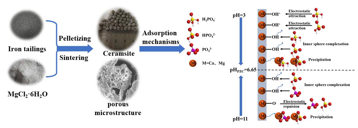 本研究以铁尾矿为主要原料,氯化镁为改性剂,制备了一种改性陶粒用于水体中磷酸盐去除。确定了改性陶粒的最佳制备条件为铁尾矿:MgCl2=50:15、预热300℃10 min、烧结800℃60 min。考察了吸附剂投加量、接触时间、温度、pH值、NH4+浓度、共存离子等因素的影响,并探究改性陶粒吸附磷酸盐后的缓释能力。结果表明,投加量为1g/L初始磷浓度为100 mg/L,吸附过程最符合准二级动力学模型和Sips模型,属于多层化学吸附。磷酸盐吸附量受pH显著影响,pH=6时达到最大吸附量10.24 mg/gNH4+浓度为100 mg/L时,有利于磷酸盐和氨氮的同时去除。该工作为开发环保可回收磷吸附材料提出了新的思路。(原文链接:https://doi.org/10.1016/j.seppur.2023.124817)(作者:肖必华;审稿:丁益)