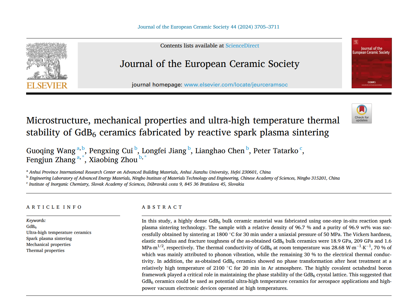 近日,我校材料与化学工程学院与中国科学院宁波材料技术与工程研究所联合培养的硕士研究生王国庆以第一作者身份在陶瓷材料国际顶级期刊《Journal of the European Ceramic Society》发表题为“Microstructure, mechanical properties and ultra-high temperature thermal stability of GdB6 ceramics fabricated by reactive spark plasma sintering” 的研究性论文。欧美黑人巨大videos精品_欧美黑人巨大xxxxx_欧美黑人乱大交_欧美黑人乱大交_欧美黑人牲交videossexeso_欧美黑人添添高潮a片www_欧美黑人添添高潮a片www_欧美黑人性暴力猛交喷水黑人巨大为第一署名单位,张峰君教授和中国科学院宁波材料技术与工程研究所周小兵研究员为论文的共同通讯作者。《Journal of the European Ceramic Society》是中科院一区Top期刊,国际陶瓷领域权威期刊之一。以上研究工作得到安徽高校优秀科研创新团队项目(2022AH010017)、安徽高校协同创新项目(GXXT2020-009)等支持。