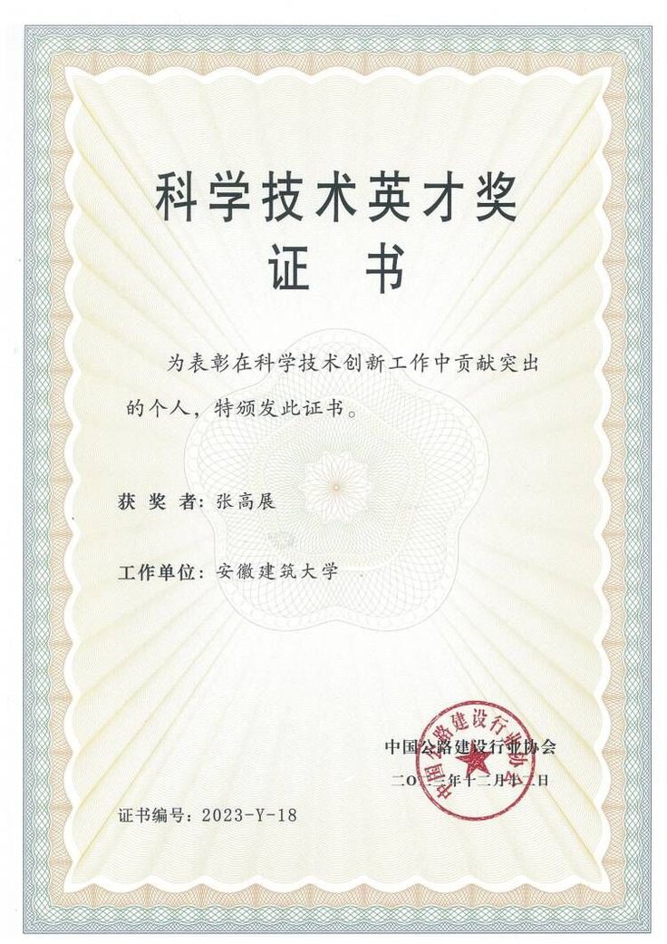 我校张高展教授获中国公路建设行业协会科技英才奖