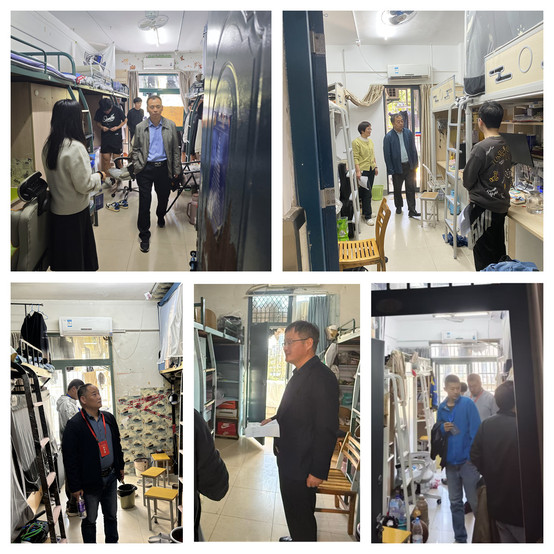 检查过程中,学院领导、辅导员、学生代表组成多个检查小组,对所负责楼栋的宿舍的卫生状况、消防安全等进行逐一检查,发现问题及时记录并当场处理,并要求辅导员关注学生整改情况。不断提醒同学们务必要注意用电安全,提高安全意识,杜绝安全隐患。