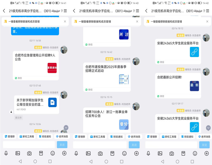 此外,充分利用学院网站、QQ群和微信等平台,广泛收集、推送各类就业岗位信息,确保毕业生都能及时获取有效的就业信息,毕业班辅导员利用假期进一步了解学生职业需求,根据个人情况为学生提供就业指导服务,帮助学生修改求职简历、强化面试技巧、提升求职技能、助力学生就业。