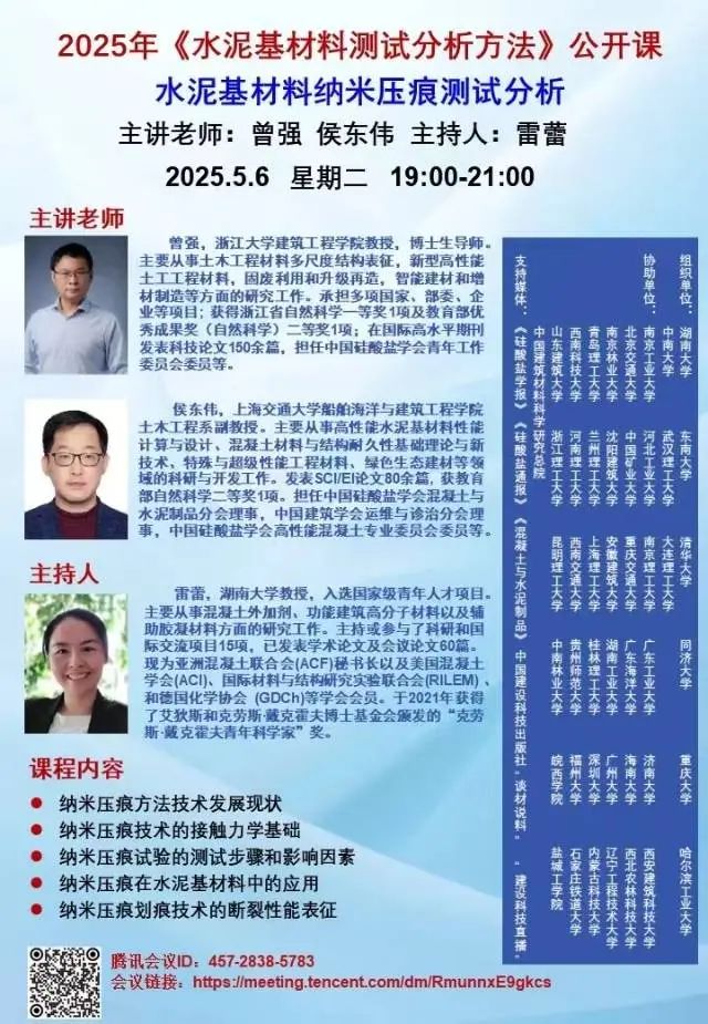 2025年《水泥基材料测试分析方法》公开课——水泥基材料纳米压痕测试分析