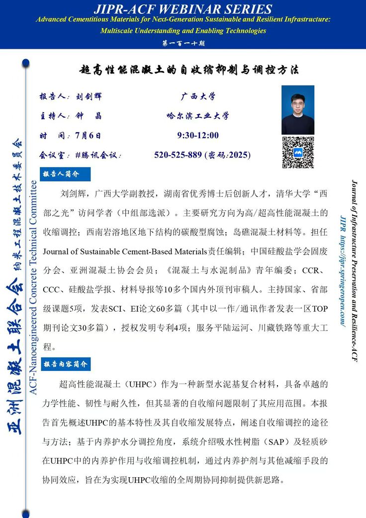学术报告-超高性能混凝土的自收缩抑制与调控方法