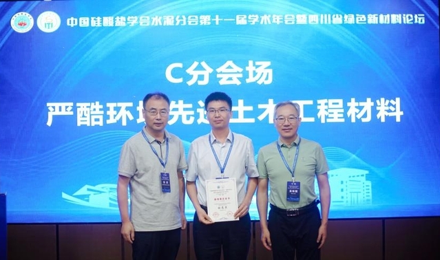 本网讯 2025年8月18日至8月20日,中国硅酸盐学会水泥分会第十一届学术年会暨四川省绿色新材料产业论坛在绵阳成功举办。会议由中国硅酸盐学会水泥分会主办,西南科技大学、四川省绿色建材学院承办。会议围绕“先进胶凝材料”“绿色低碳胶凝材料”“严酷环境先进土木工程材料”“功能与智能建筑材料”等前沿领域,采用邀请与投稿相结合的方式进行专题报告分享,剖析行业发展动态。我院张高展教授受邀参加大会,了题为行车荷载对轻质UHPC宏观性能和微观结构的影响”的邀请报告,详细介绍了行车荷载对轻质UHPC力学性能、钢纤维分布、轻集料分布、孔隙结构、界面过渡区等方面的影响,并从胶凝体系组成、功能外加剂调控、温缩型纤维混杂、钢纤维定向分布等方面介绍了轻质UHPC抗扰动性能的调控提升方法及在实际工程中的应用效果。此外,会议还成立了四川省绿色建材学院专家智库委员会,张高展教授受聘为四川省绿色建材学院智库专家。